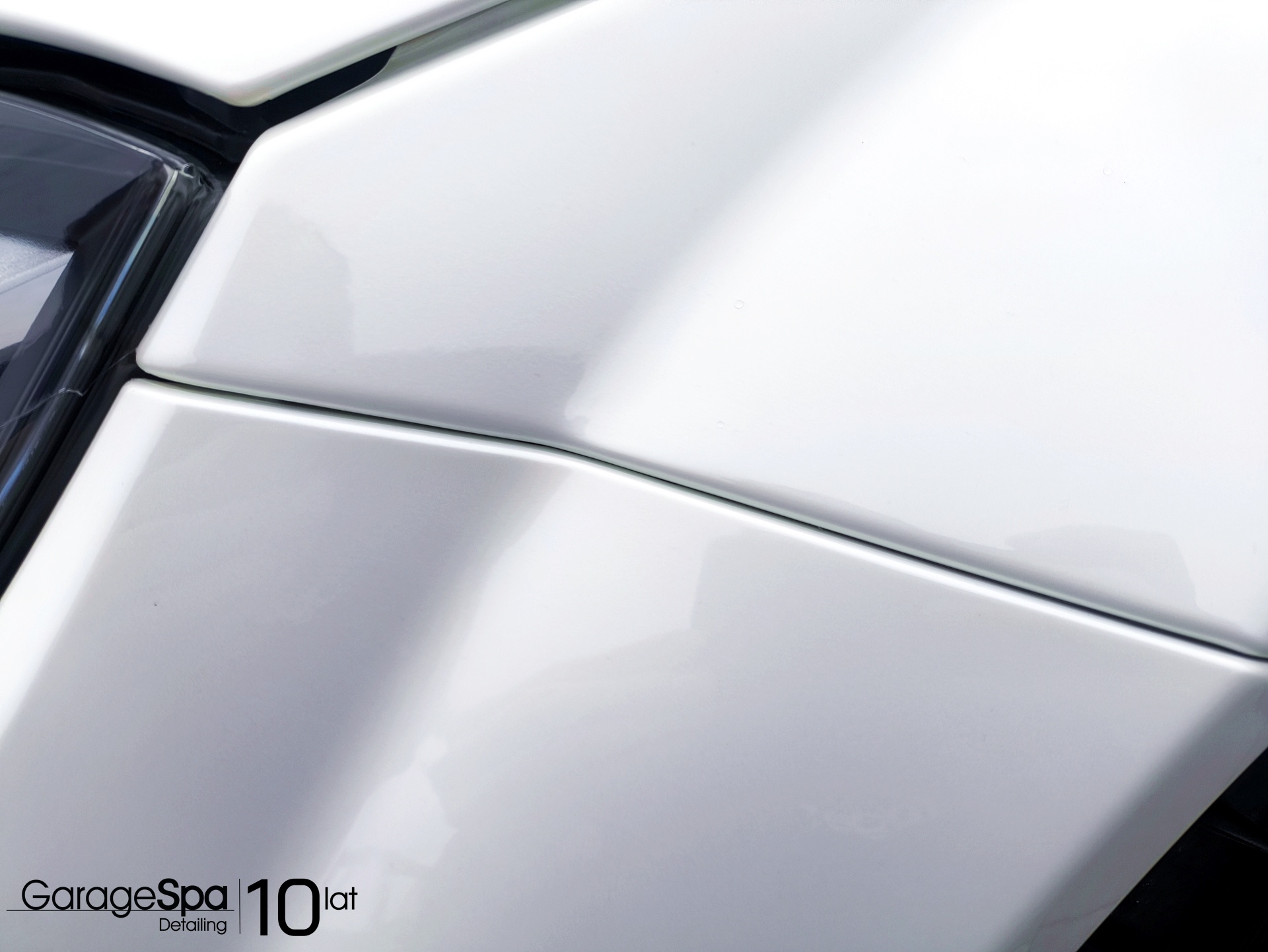 Dzięki wyżej zastosowanym zabiegom z białego perłowego lakieru Mercedesa, udało się wydobyć maximum blasku oraz głębi koloru (folia ppf po aplikacji na nadwoziu samochodu dodaje niesamowitej szklistości oraz jest obecnie najskuteczniejsza formą ochrony lakieru samochodowego)